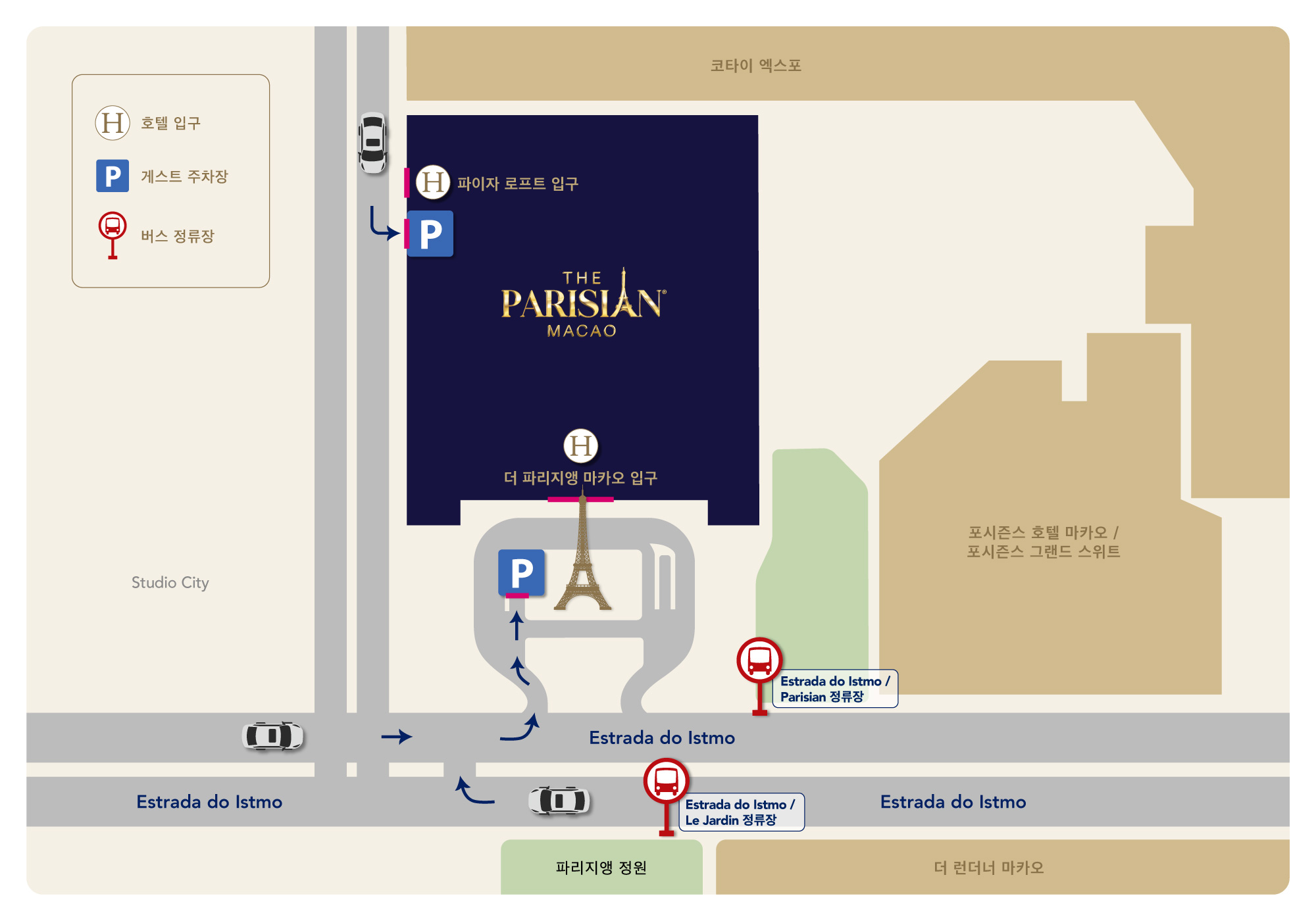 셀프 주차: 시간당: MOP $25, 24시간당: MOP $300 (주차 요금을 결제하려면